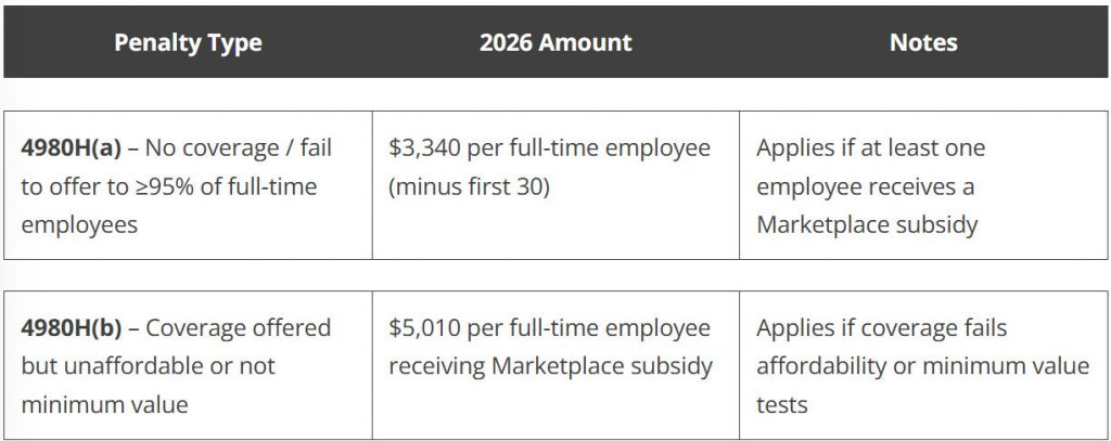 2026 Employer Shared Responsibility Penalties (§4980H)